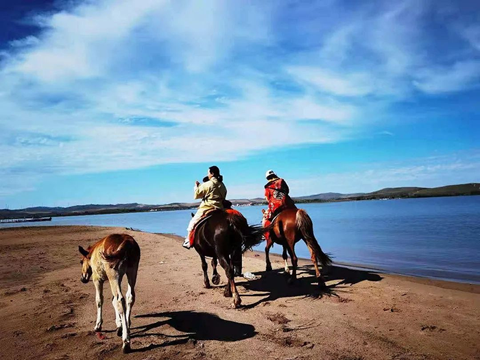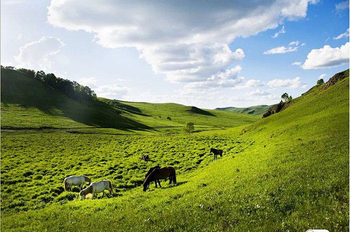 夏天的草原綠草如茵,深呼吸一口,清香的草木味撲鼻而來,讓人心曠神怡、如癡如醉。漫游在草原上,風(fēng)吹草動,形成了一幅如詩如畫的景象,正如北朝民歌“天蒼蒼,野茫茫,風(fēng)吹草低見牛羊”!騎在馬背上,悠哉游哉,仿佛進(jìn)入了世外桃源。