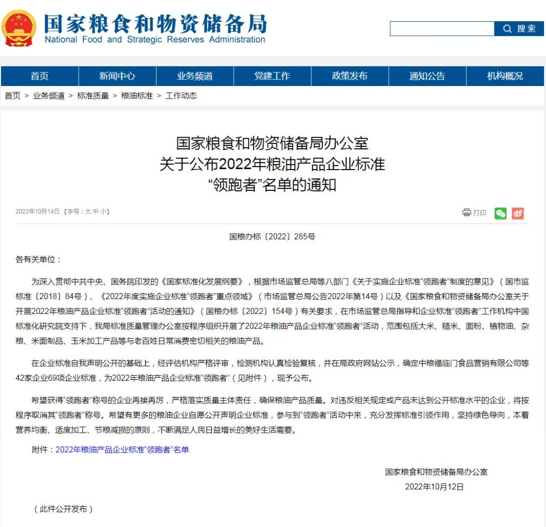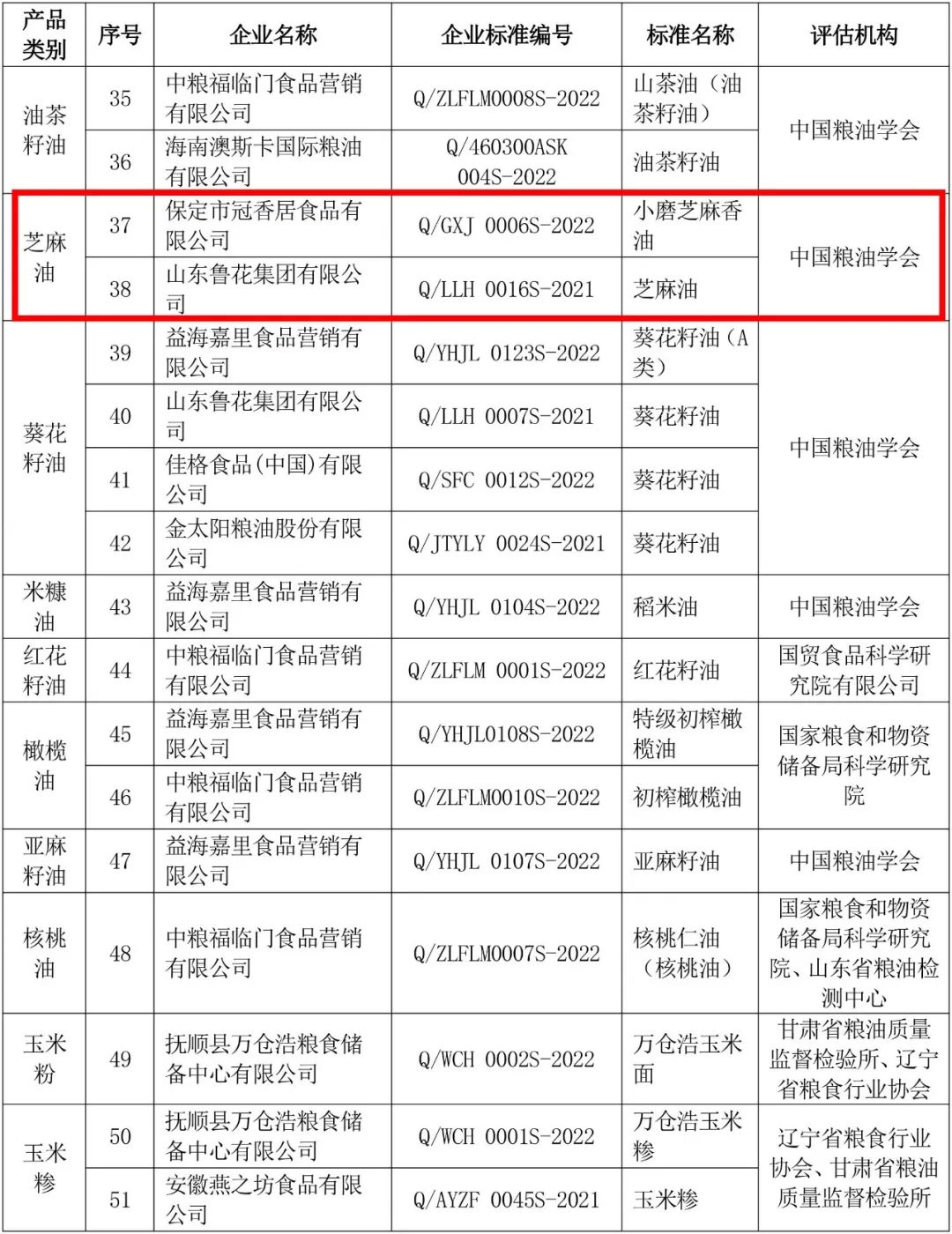 恭喜冠香居公司獲得2022年糧油產品企業標準領跑者!