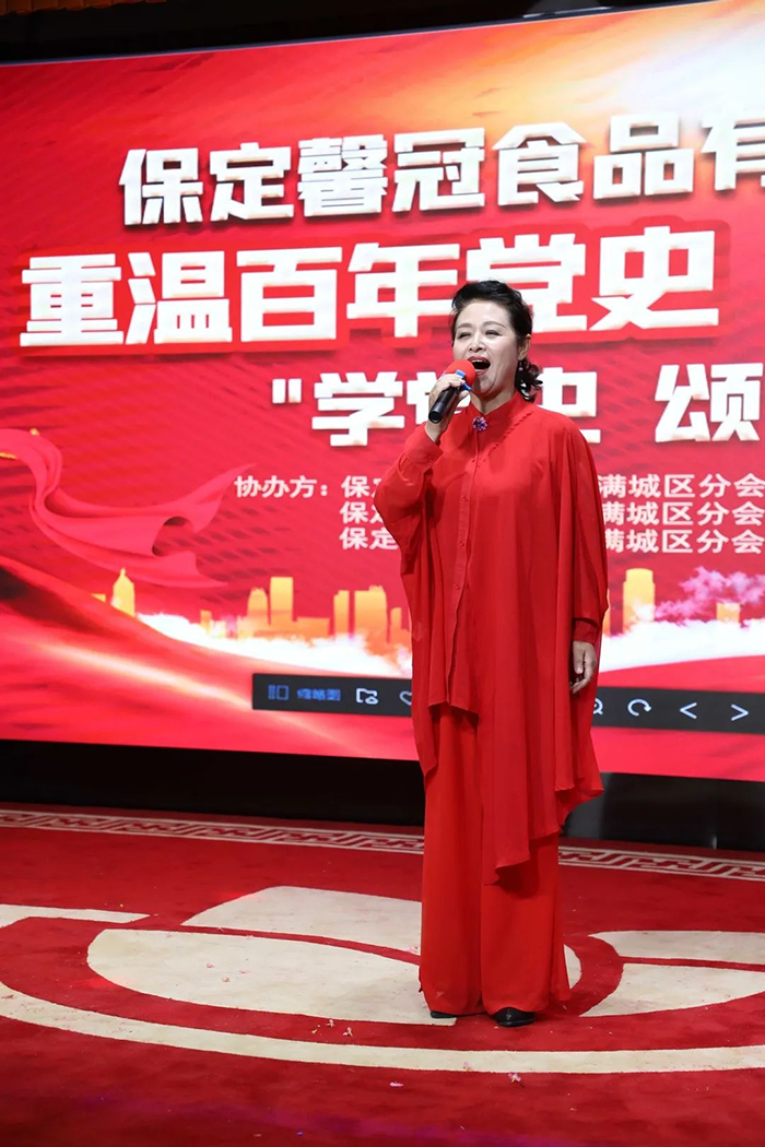 在座各位來賓共同學習“黨史”,并觀看了黨史視頻《為什么選擇了共產黨》,歌曲《我愛你中國》《陽光樂章》《聽我說謝謝你》、詩朗誦《在歡呼的人群中》《我驕傲我是中國人》等精彩節目輪番上演,精彩紛呈,充分展現了保定馨冠食品有限公司職工及到場的各界社會精英朝氣蓬勃、積極向上、文明和諧的精神風貌。