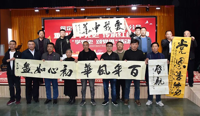 重溫百年黨史,傳承紅色精神!在建黨100周年之際,由保定馨冠食品有限公司主辦,民建保定市滿城支部、保定市京津冀協同發展促進會、保定市廣播電視報社、保定市美術家協會滿城區分會、保定市書法家協會滿城區分會、保定市攝影家協會滿城區分會協辦的“講黨史 頌黨恩”?聯誼活動,于2021年5月2日,在保定市冠香居食品有限公司3樓“馨冠文化藝術館”隆重上演。